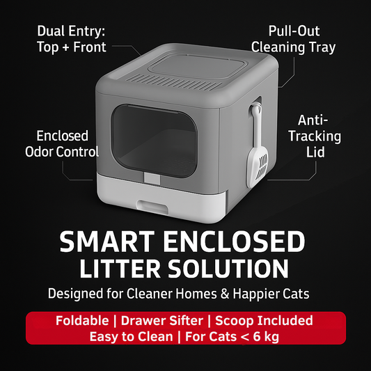 FurFort Aura Large Enclosed Cat Litter Box – Flip Cover & Odor Control