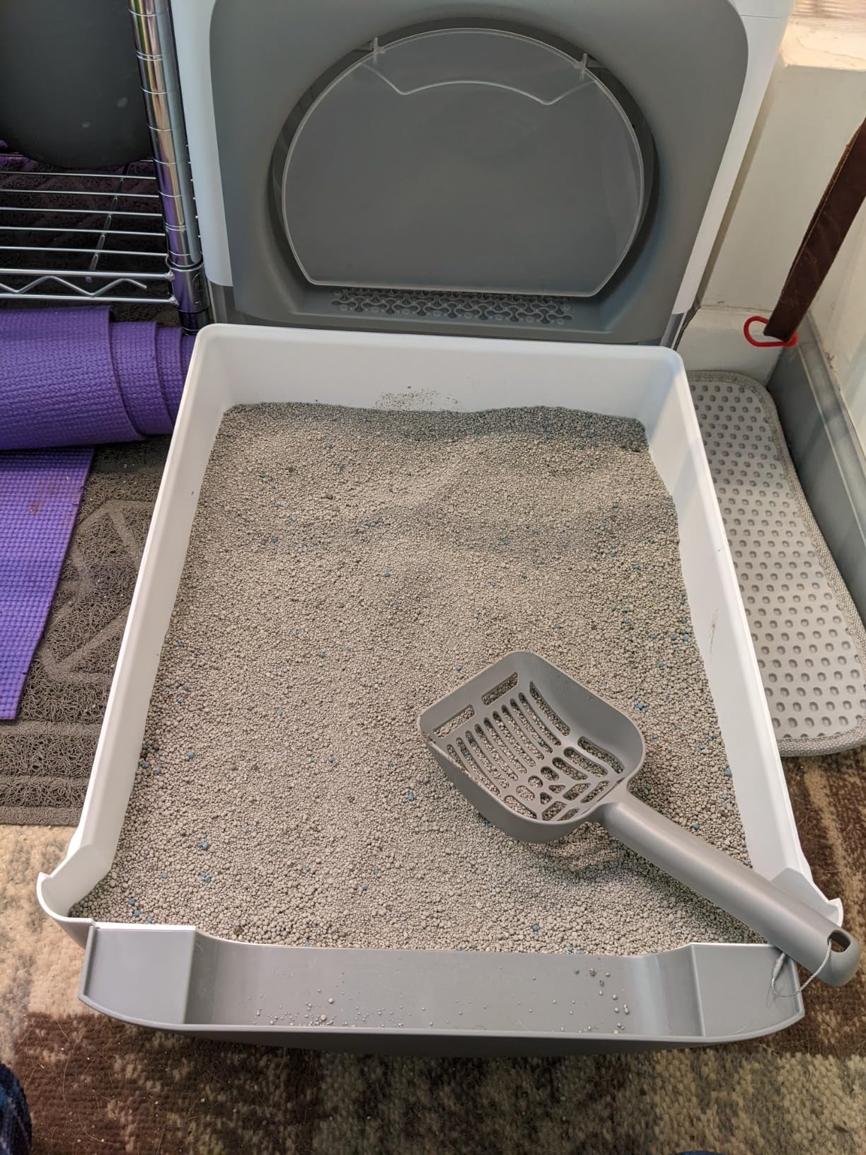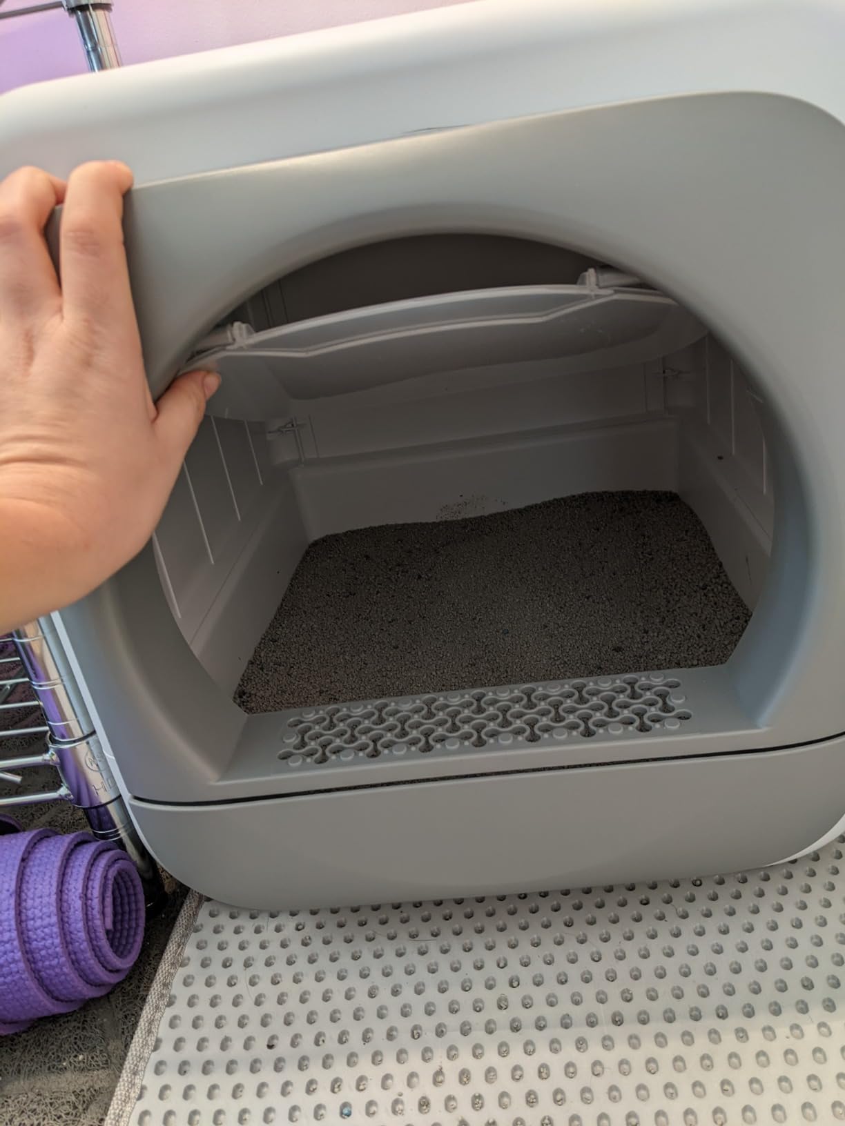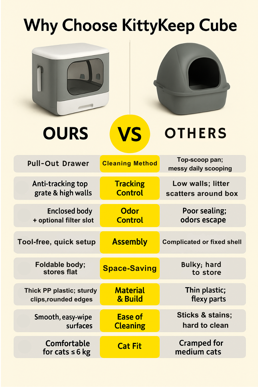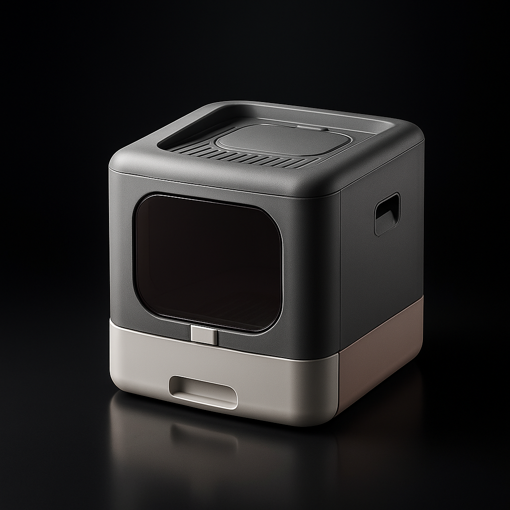 The Kitty Keep litter box features a fully enclosed design that gives your cat privacy while keeping litter neatly contained.