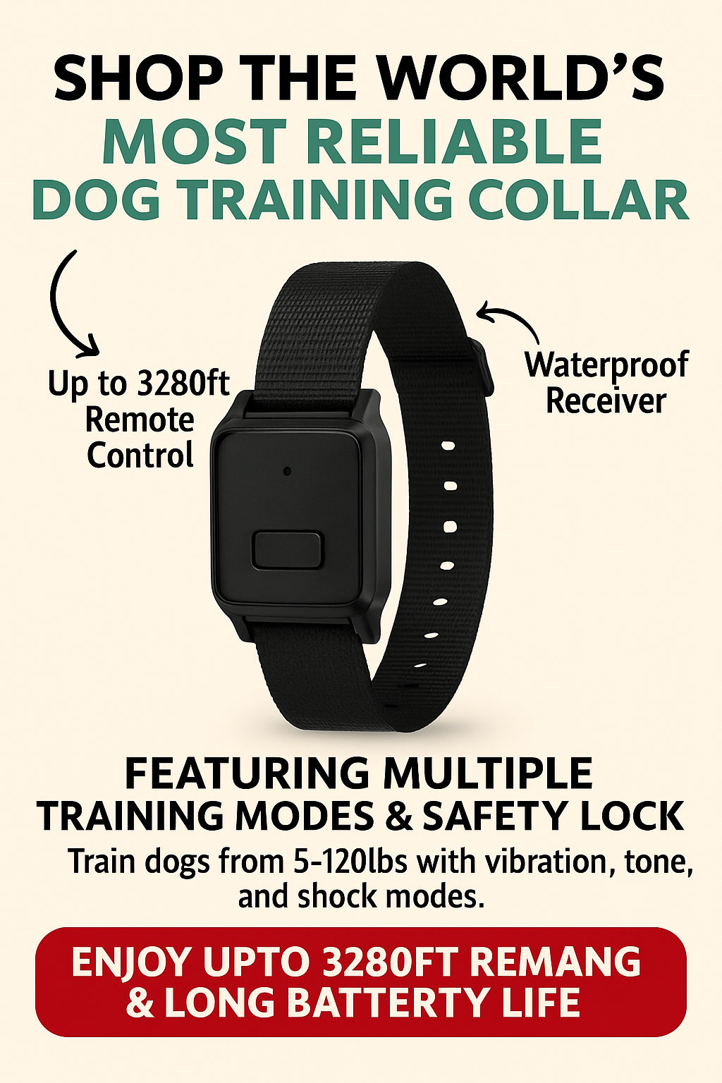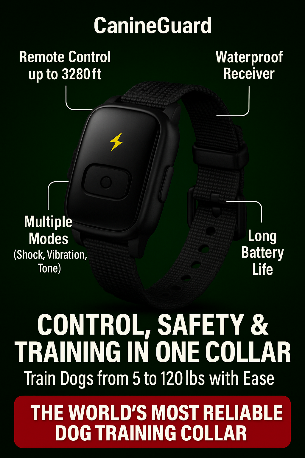 The CanineGuard collar offers a powerful 3280ft remote range, waterproof design, and multiple safe training modes.Easily correct barking, improve recall, and guide behavior — effective for dogs from 5 to 120lbs.